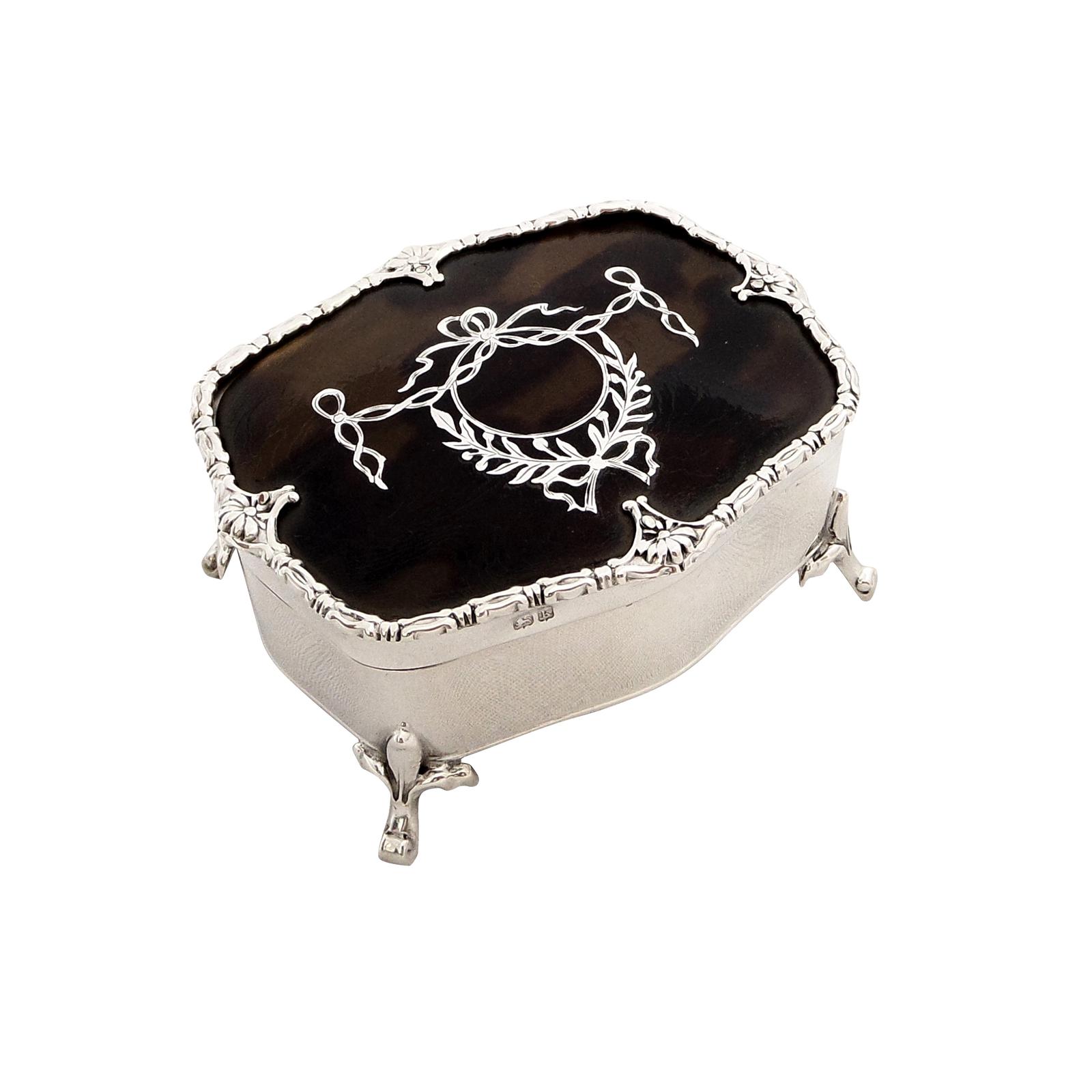 Antique Edwardian Sterling Silver & Tortoiseshell Trinket Box 1909