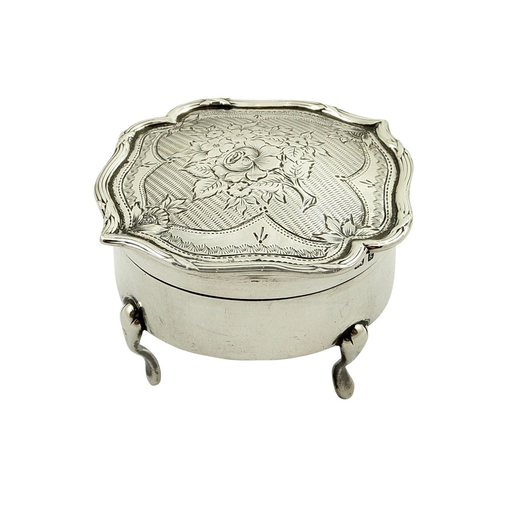 Antique Edwardian Sterling Silver Trinket Box with Flower Decoration