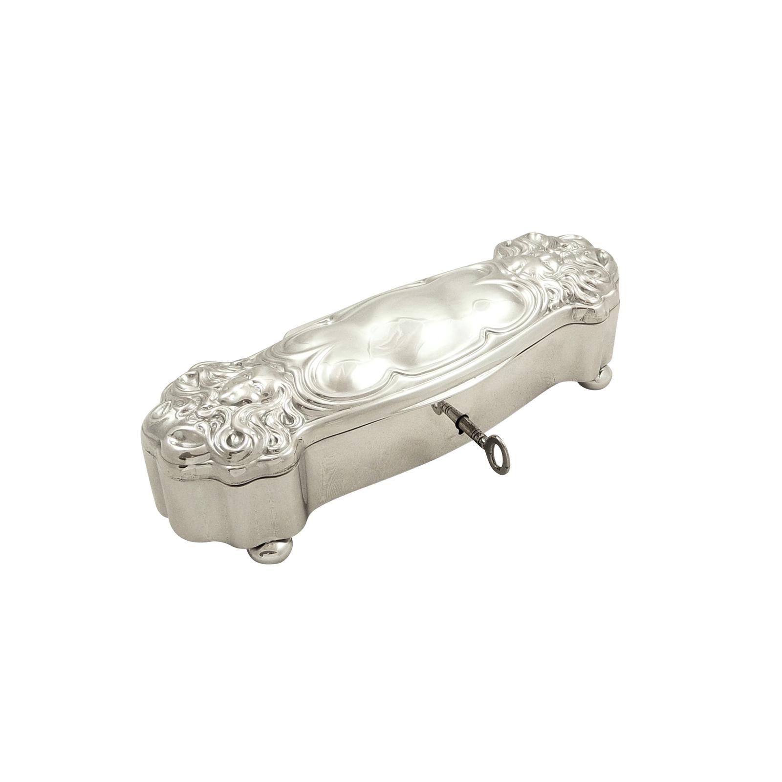 Antique Edwardian Sterling Silver Trinket Box with Key 1901