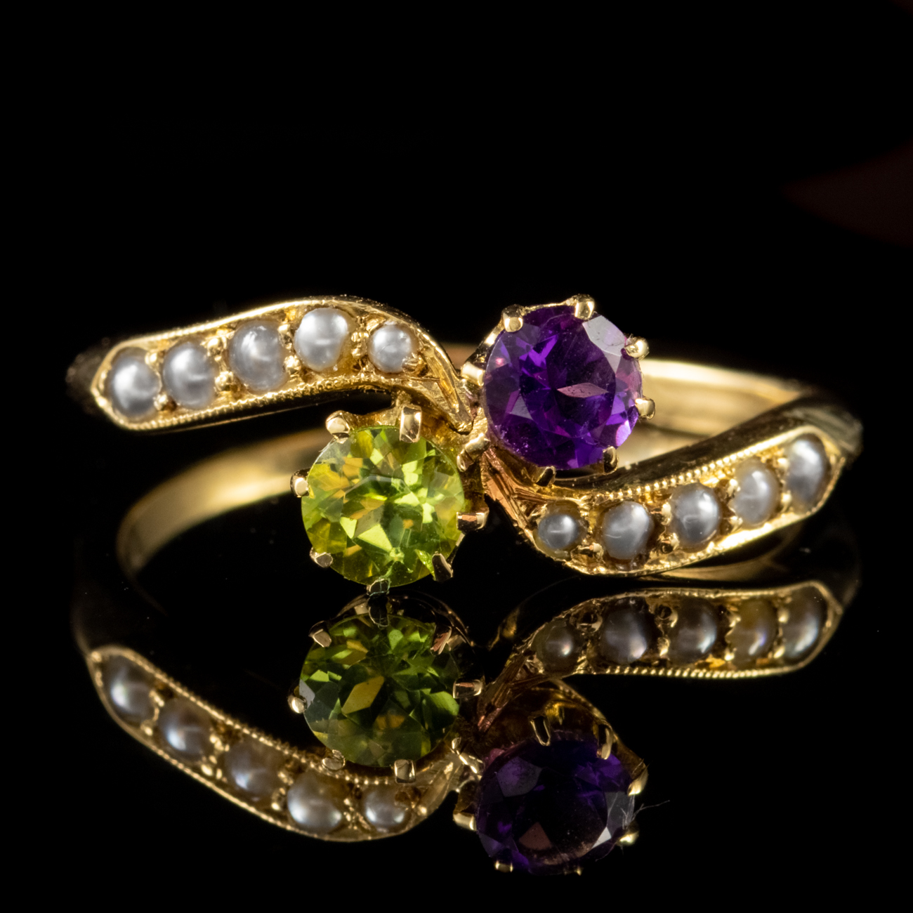 Antique Edwardian Suffragette 0.25ct Amethyst Peridot 18ct Gold c.1910