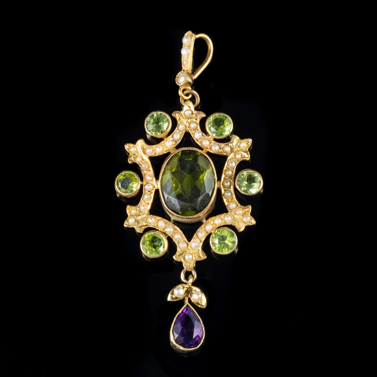 Antique Edwardian Suffragette 3.50ct Peridot Pendant 18ct Gold c.1910