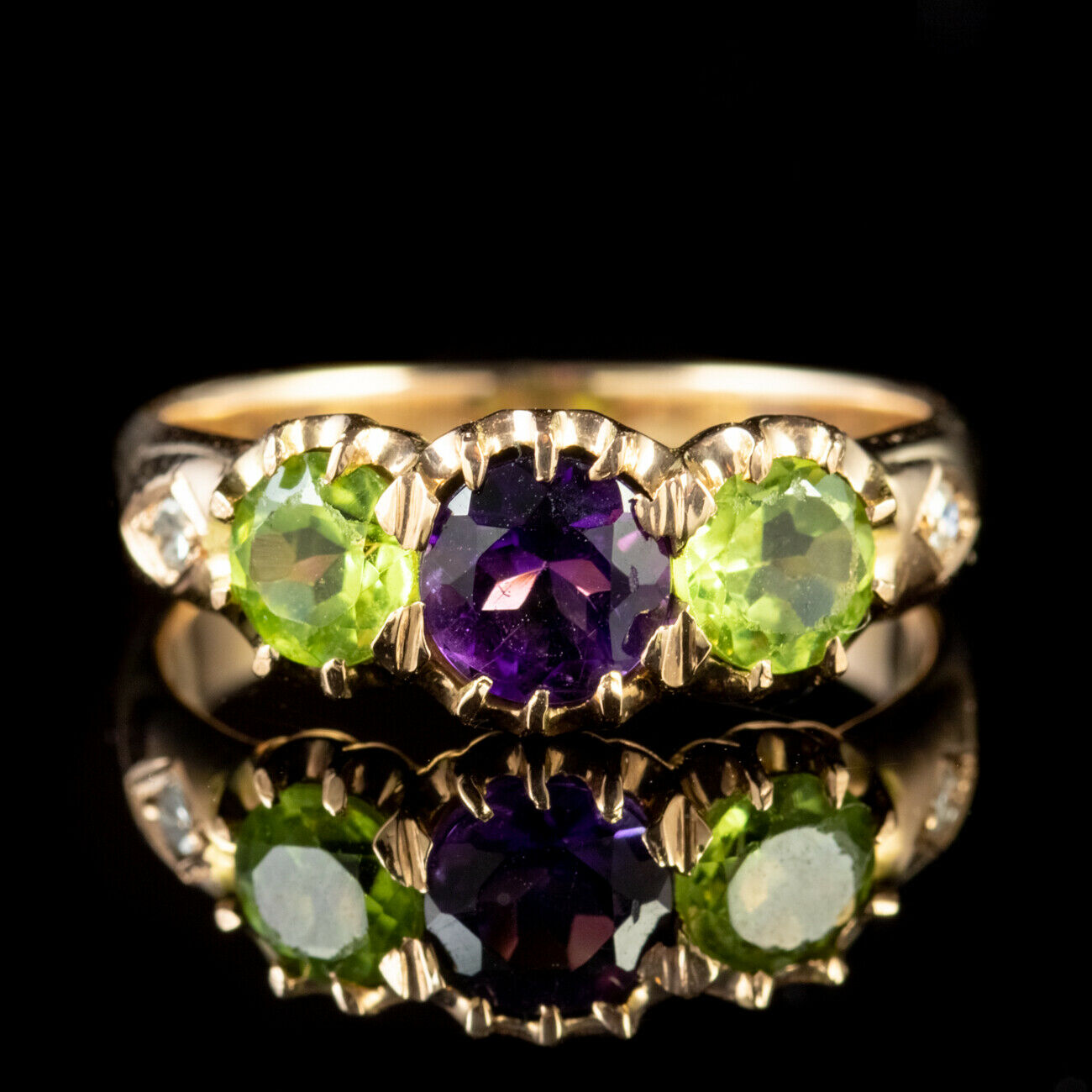 Antique Edwardian Suffragette Amethyst Peridot Ring 18ct Gold c.1910