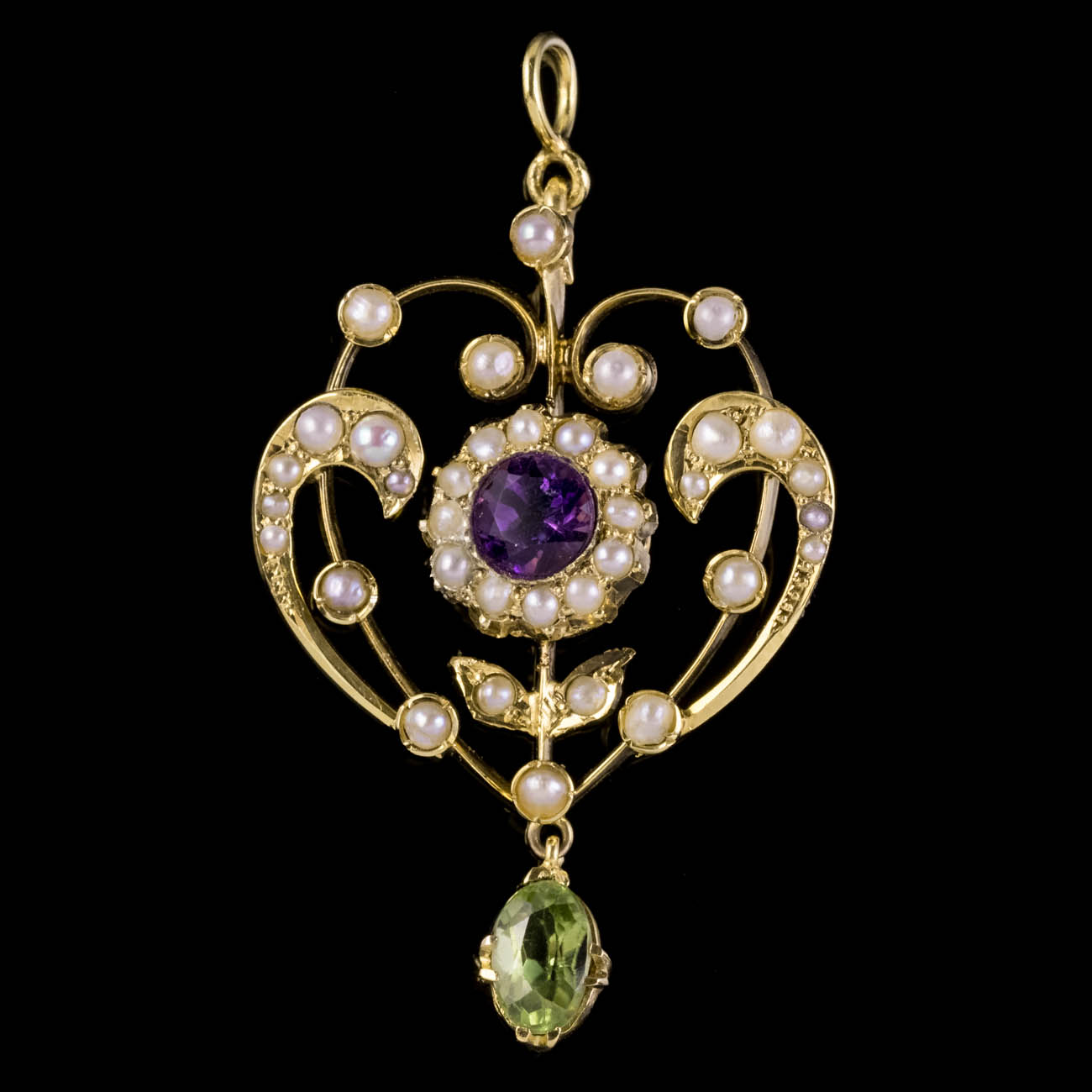 Antique Edwardian Suffragette Floral Pendant 18ct Gold Amethyst Peridot c.1910