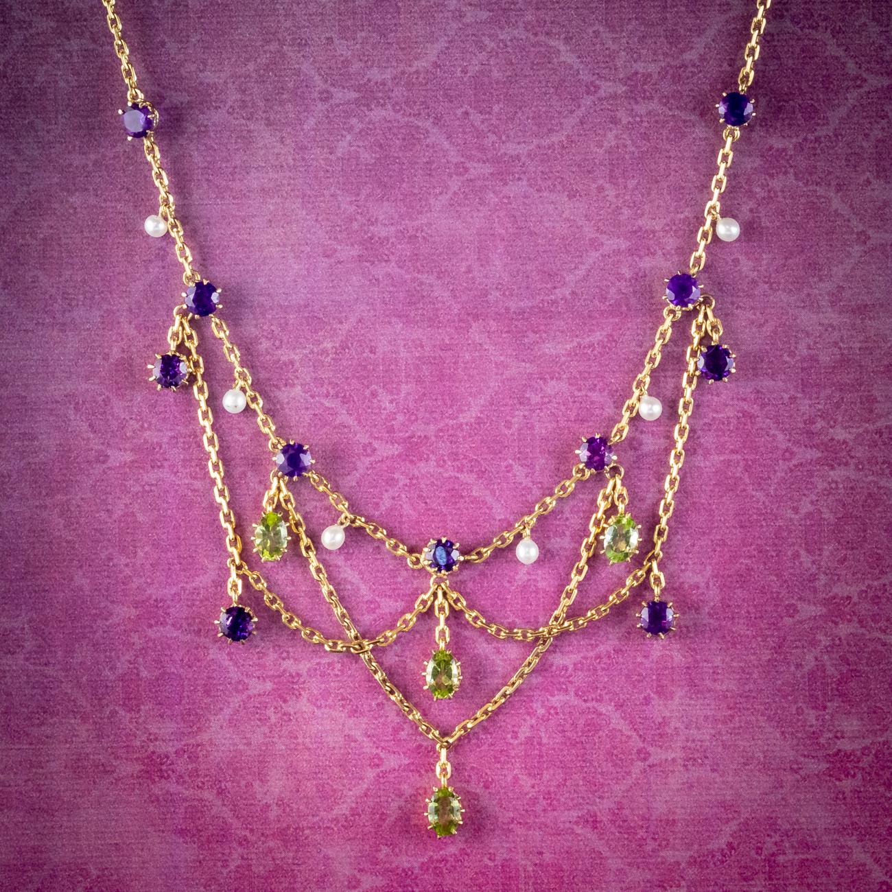 Antique Edwardian Suffragette Garland Necklace 18ct Gold c.1910