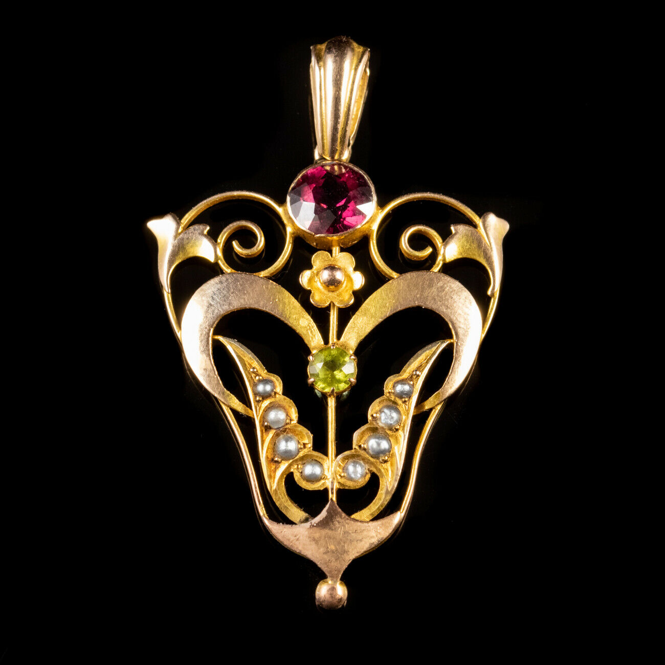 Antique Edwardian Suffragette Garnet Pendant 15ct Gold c.1910