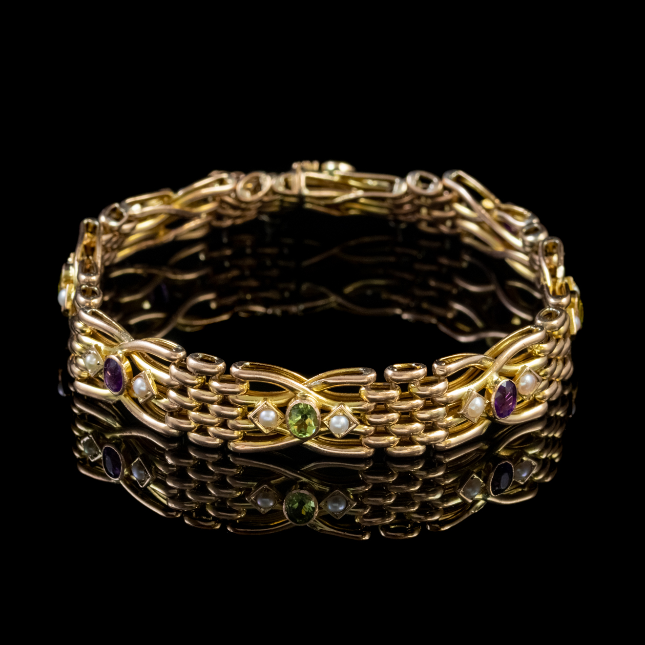 Antique Edwardian Suffragette Gate Bracelet 15ct Gold c.1910
