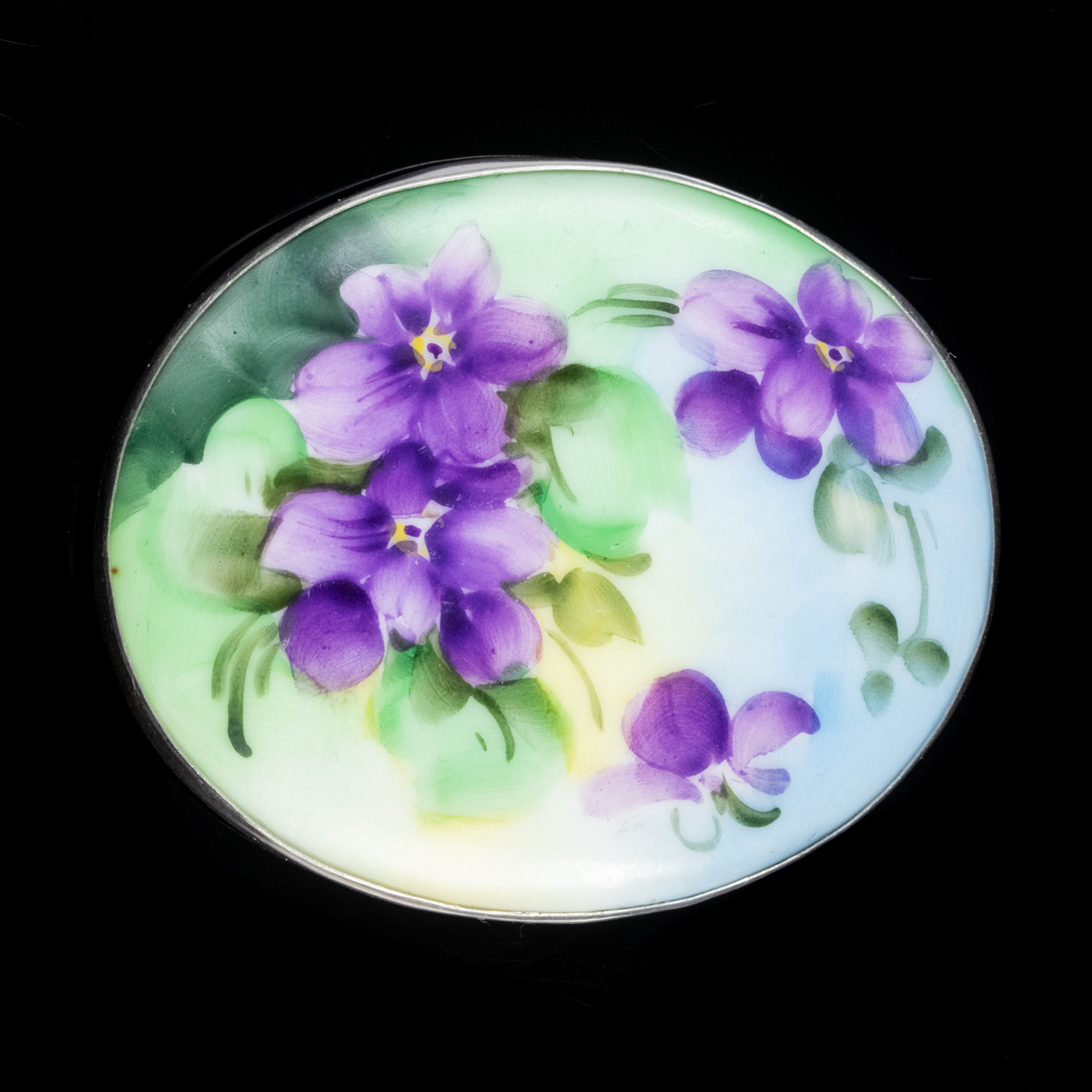 Antique Edwardian Suffragette Hand Painted Brooch Silver C.1910