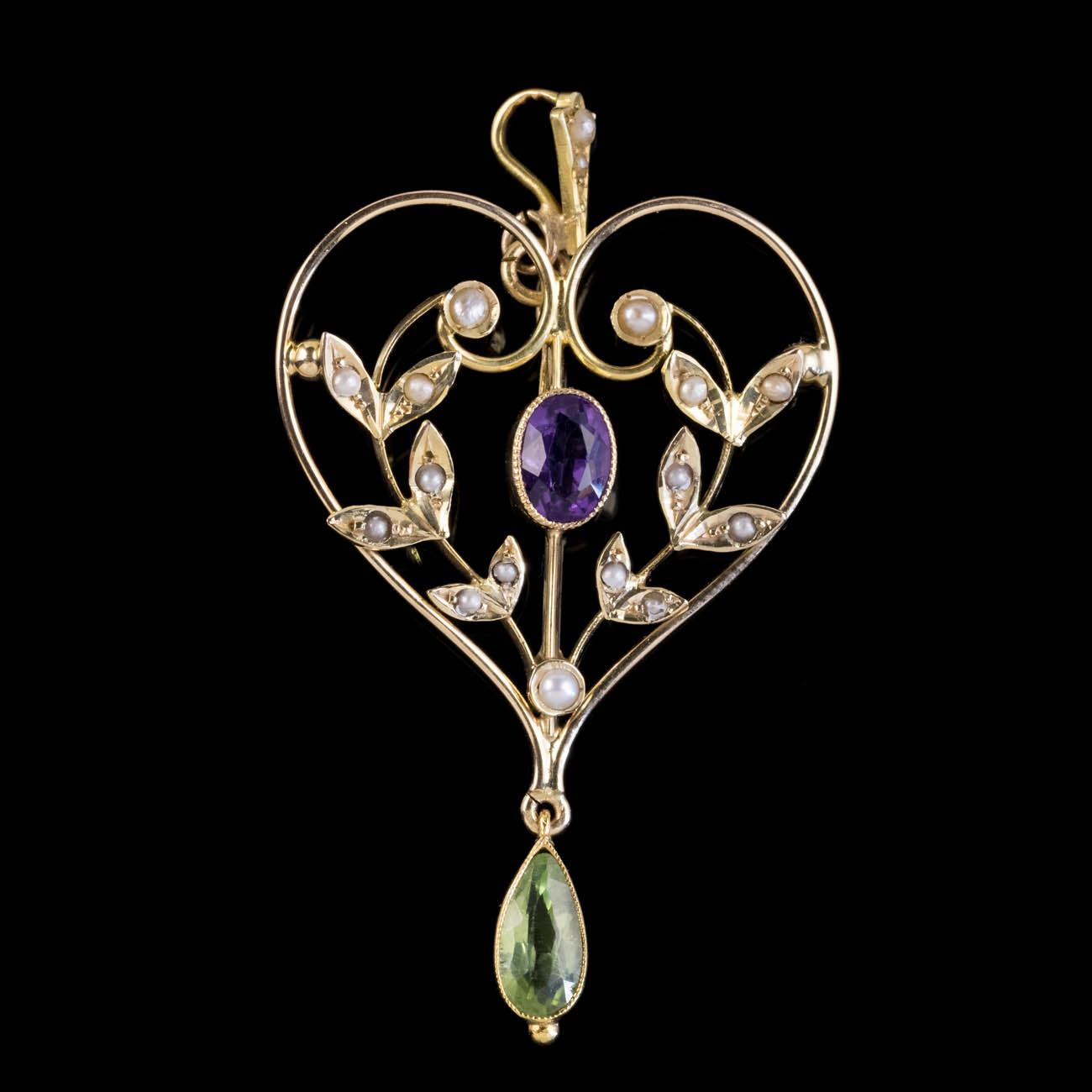Antique Edwardian Suffragette Heart Pendant 9ct Gold c.1910