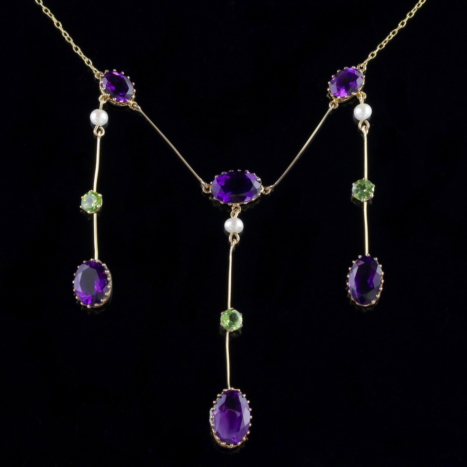 Antique Edwardian Suffragette Necklace 18ct Gold Amethyst Droppers c.1910