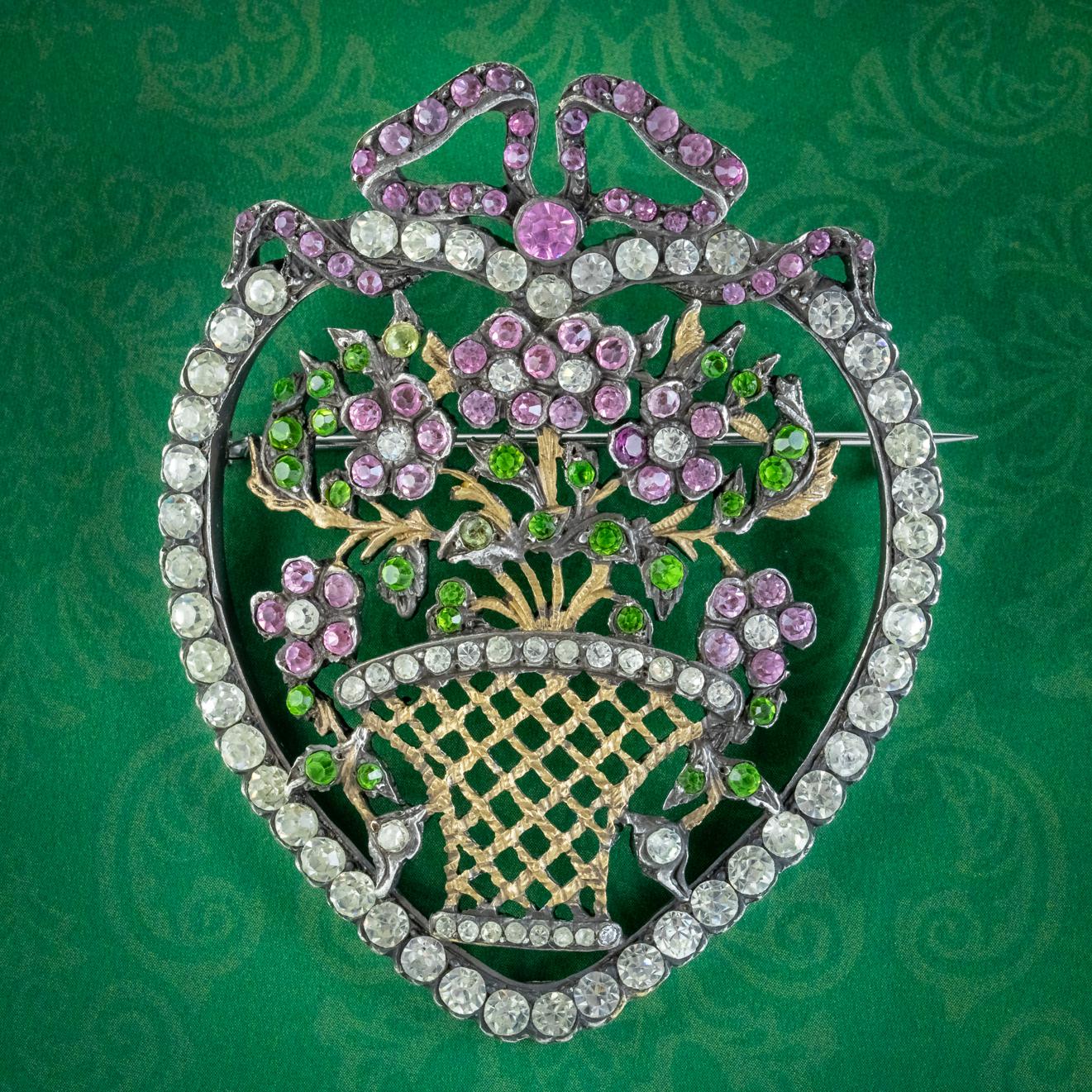 Antique Edwardian Suffragette Paste Heart & Flower Basket Brooch c.1910