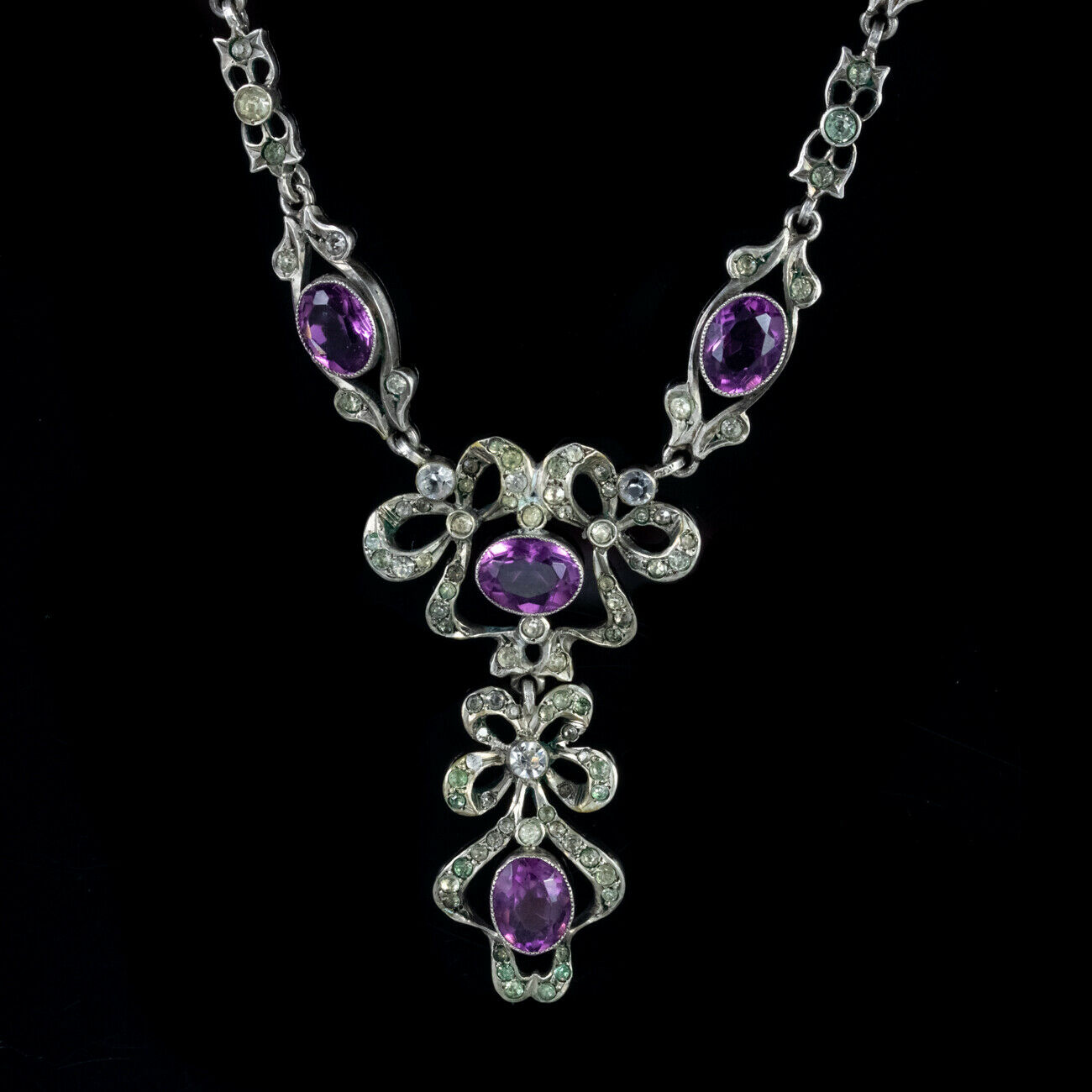Antique Edwardian Suffragette Paste Necklace Silver c.1910