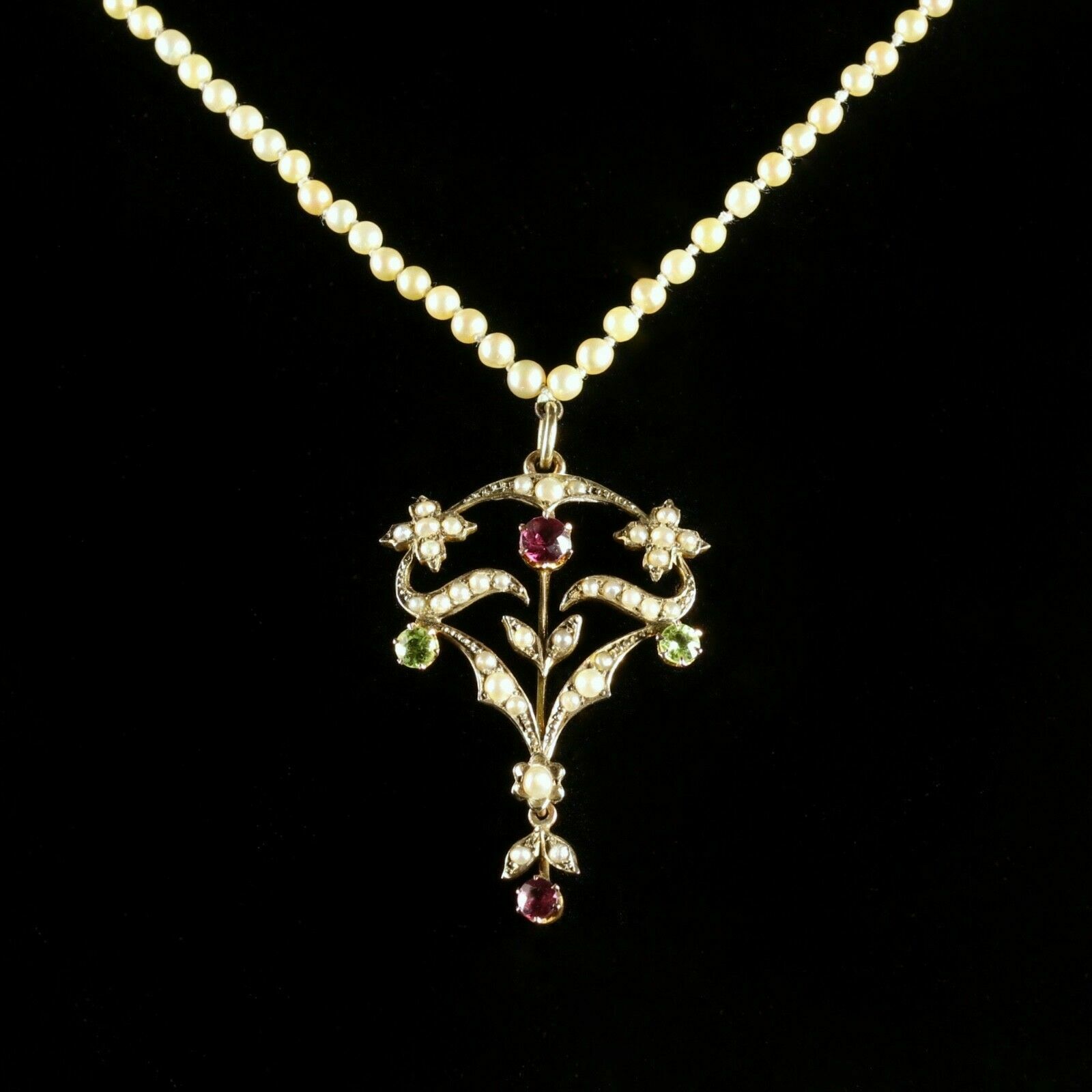 Antique Edwardian Suffragette Pearl Necklace Diamond Clasp c.1910