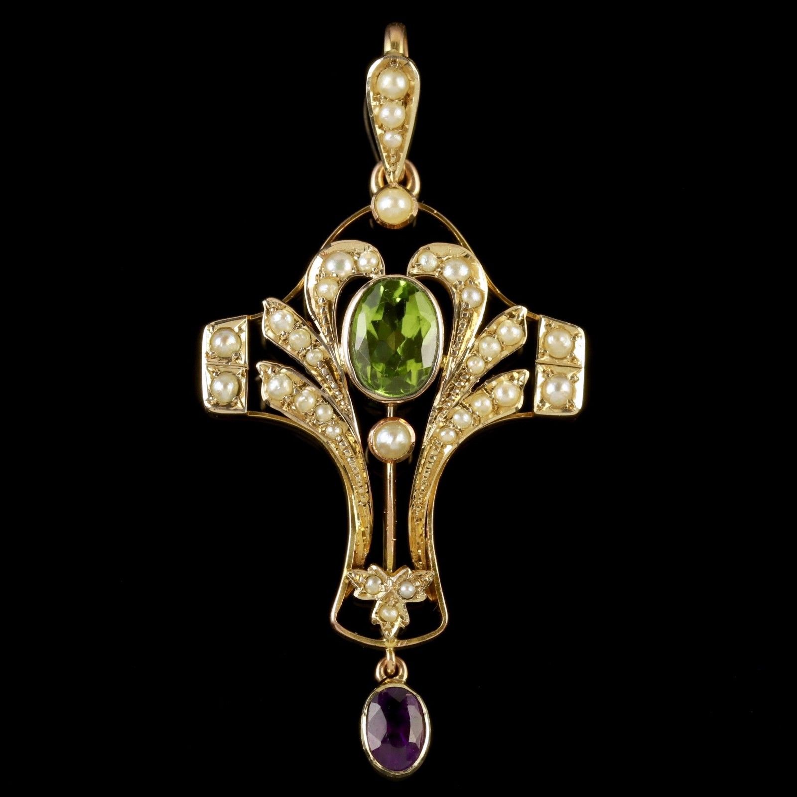 Antique Edwardian Suffragette Pendant Peridot Pearl Amethyst c.1910