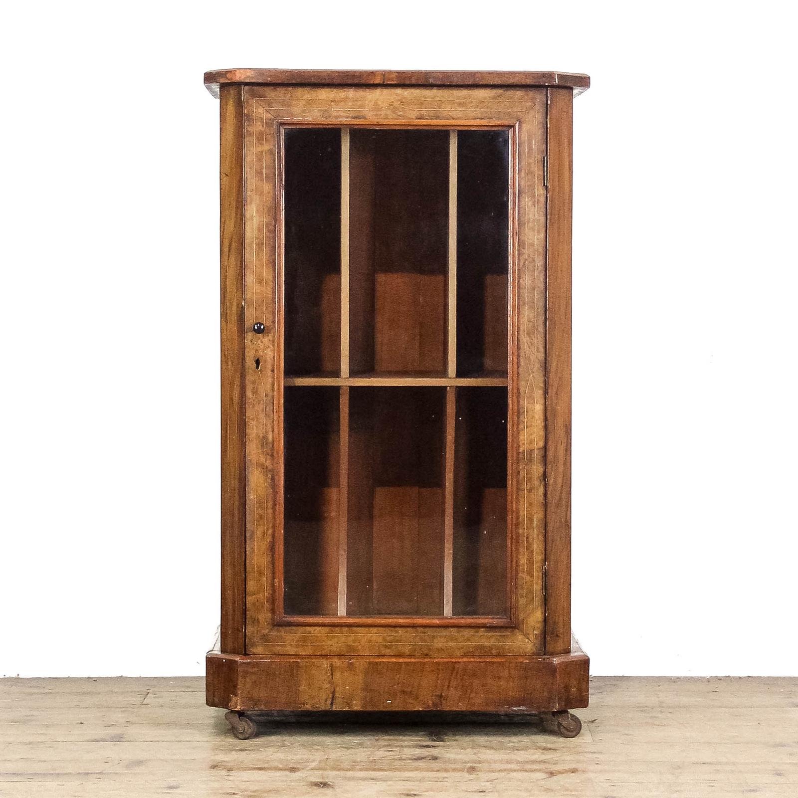 Edwardian walnut music cabinet dating from the early 20th century, originally intended for the storage of sheet music. The cabinet features a glazed door enclosing a shelved interior, with attractive figured walnut veneers and simple line inlay decoration to the top and sides. At some point in its life the cabinet has been adapted with additional depth, most likely to allow for record storage, making it a practical and versatile piece for modern use whilst still retaining its period character. A useful and decorative piece.