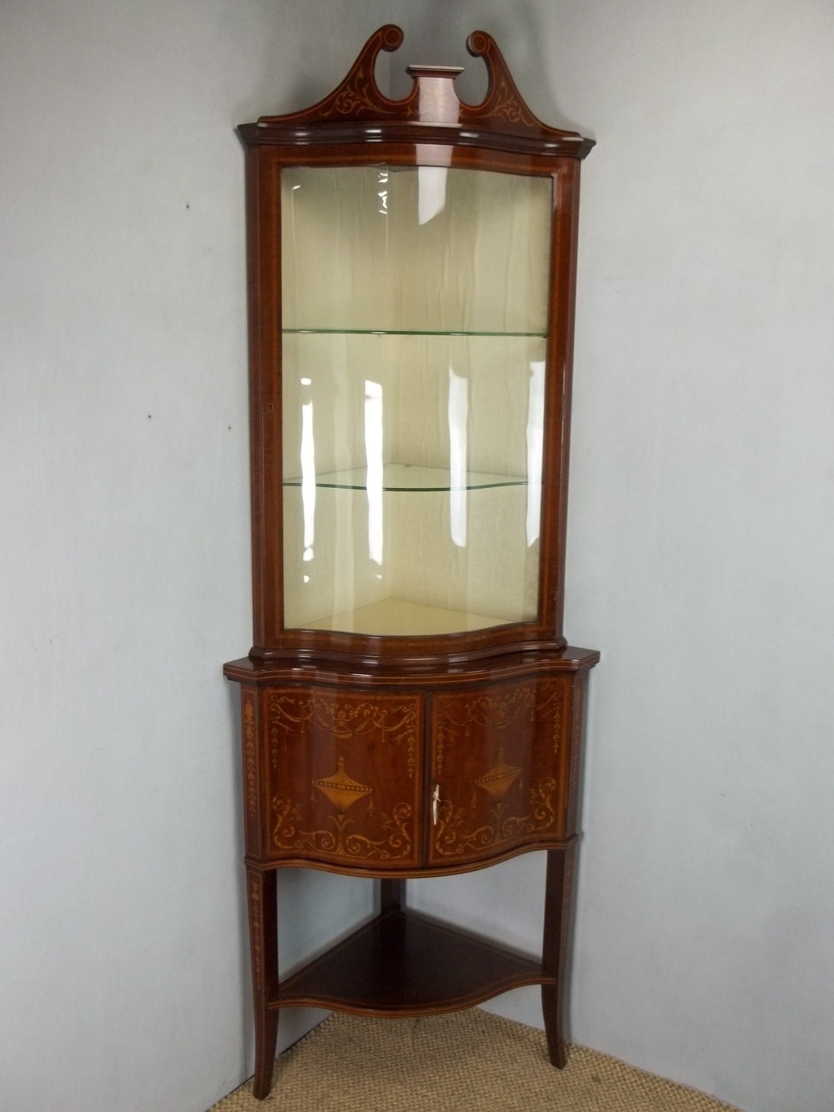 Antique Edwards & Roberts Mahogany Marquetry Inlaid Display Corner Cabinet c.1900