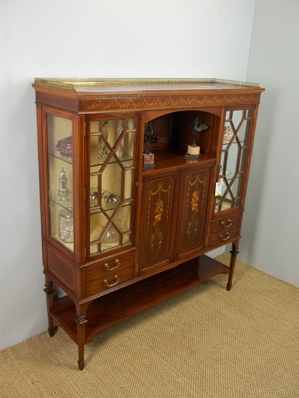 Antique Edwards & Roberts Mahogany Marquetry Inlaid Display Vitrine Sideboard Side Cabinet Cupboard