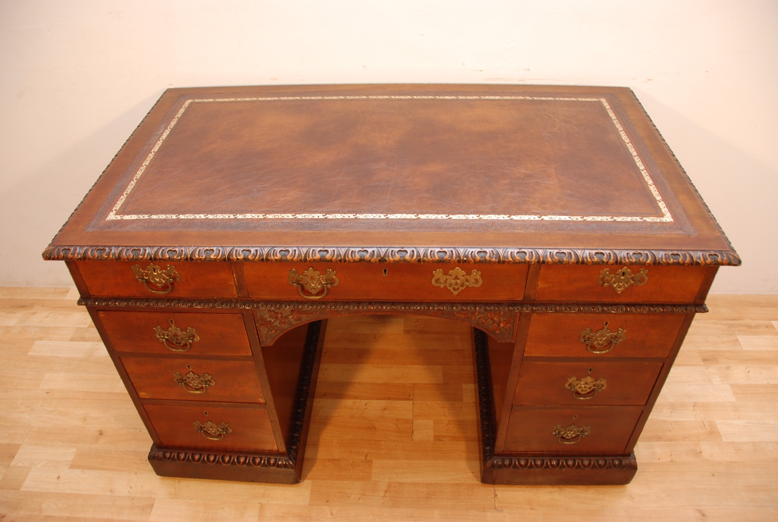 Antique Edwards & Roberts Pedestal Desk New Brown Leather
