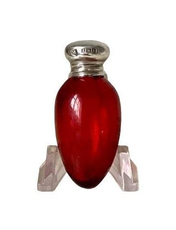 Antique Egg Form Ruby Red Glass Perfume Scent Bottle Silver Lid Birmingham 1909