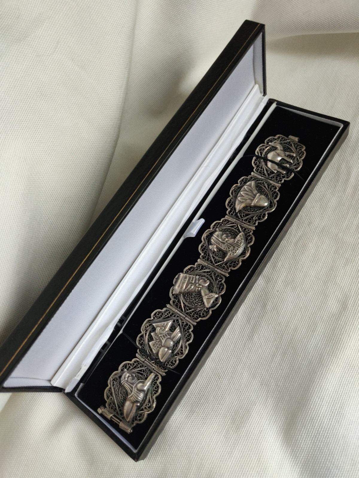 Antique Egyptian Solid Silver Panel Filigree Bracelet 44gr