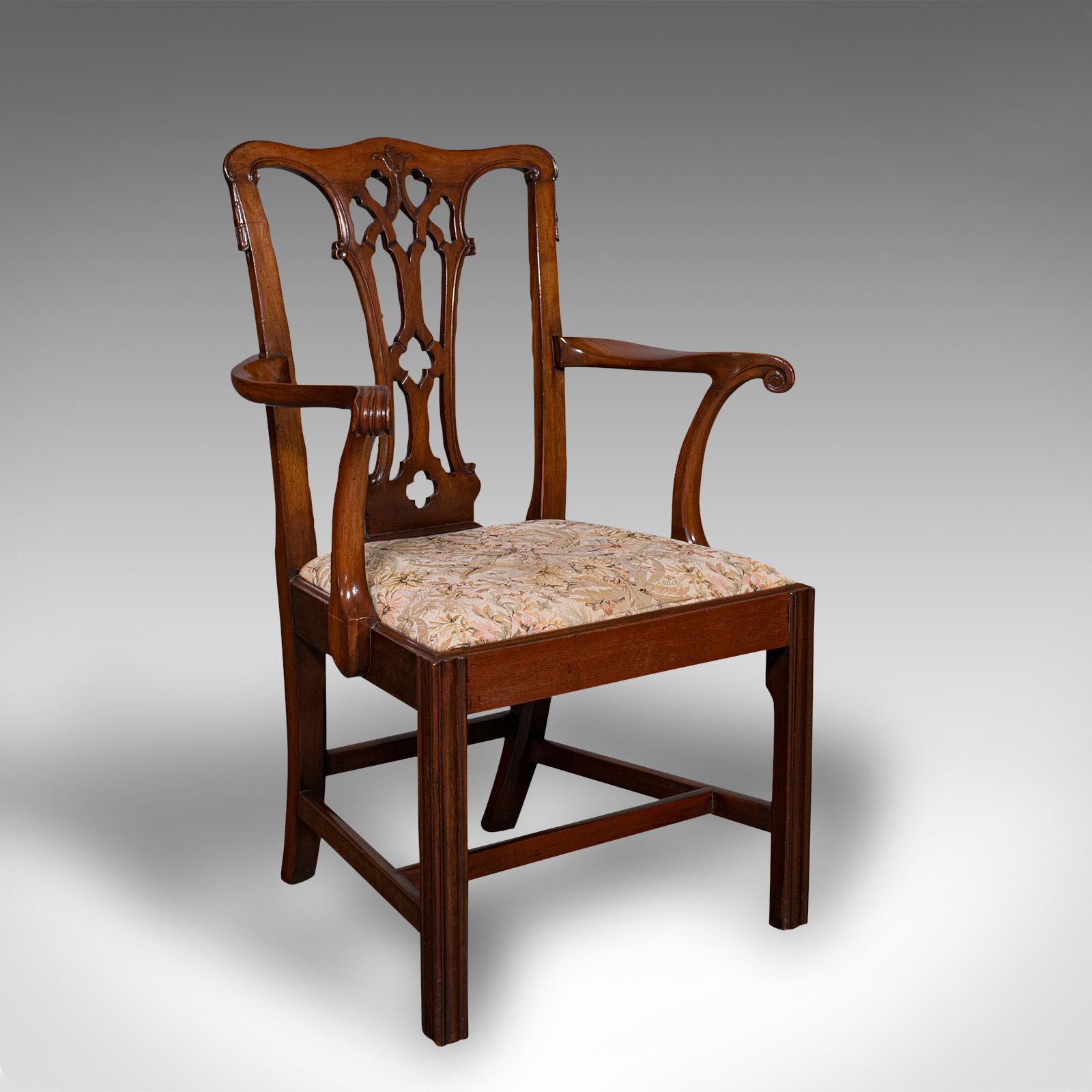 Antique Elbow Chair, English Walnut, After Chippendale, Georgian Revival c.1860