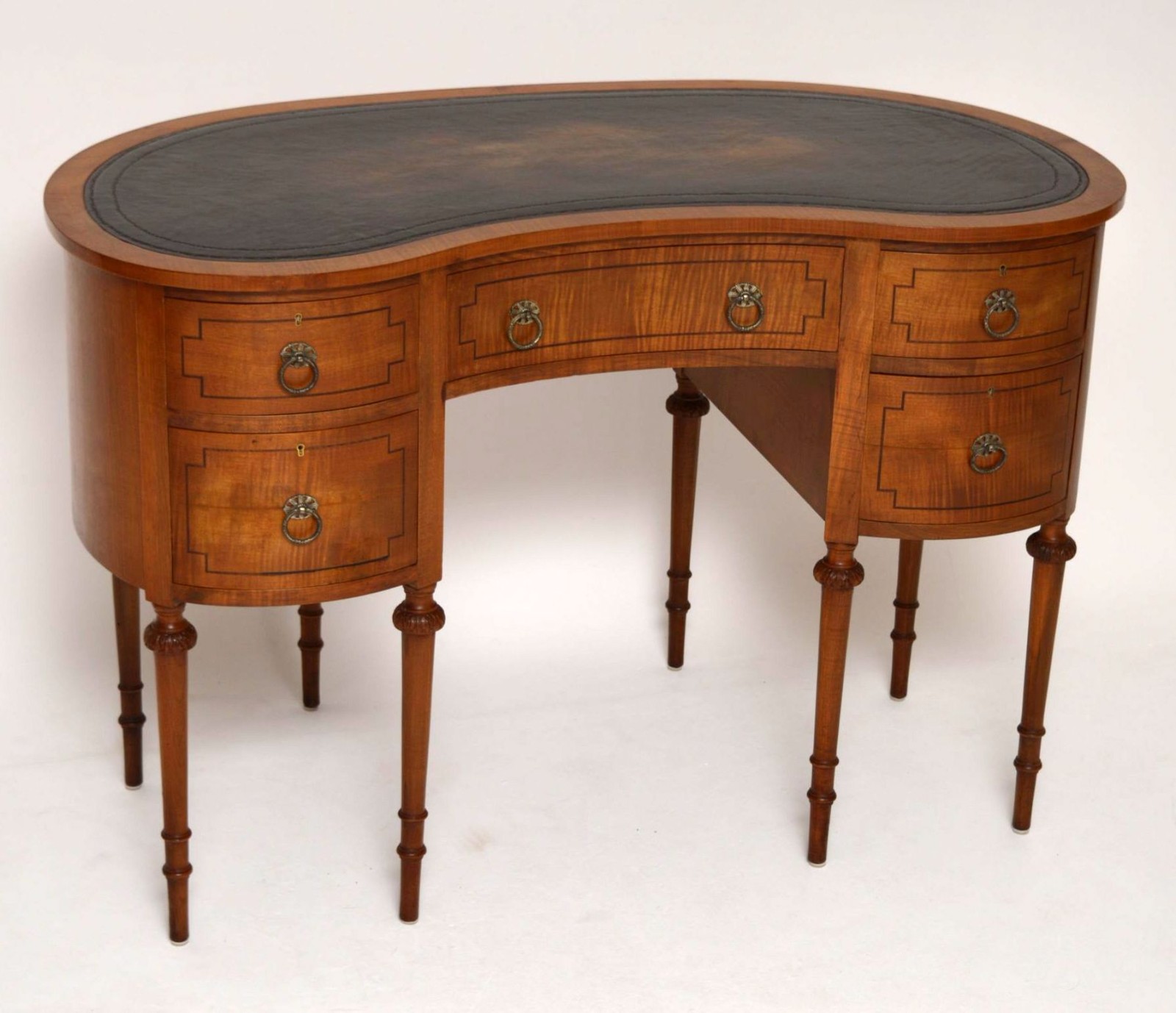 Antique Elegant Edwardian Inlaid Mahogany Kidney Shaped Desk c.1910