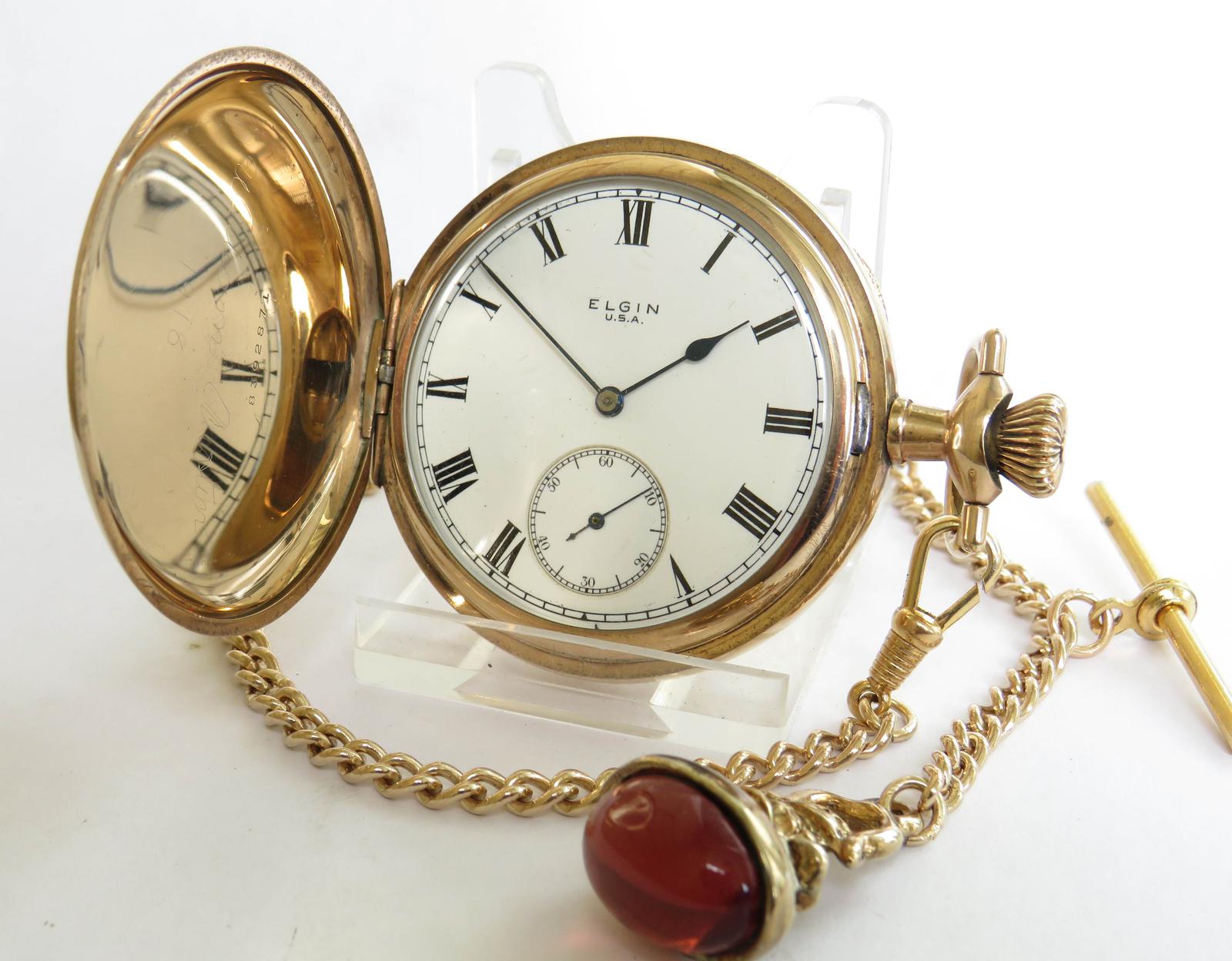 Antique Elgin Full Hunter Pocket Watch & Chain