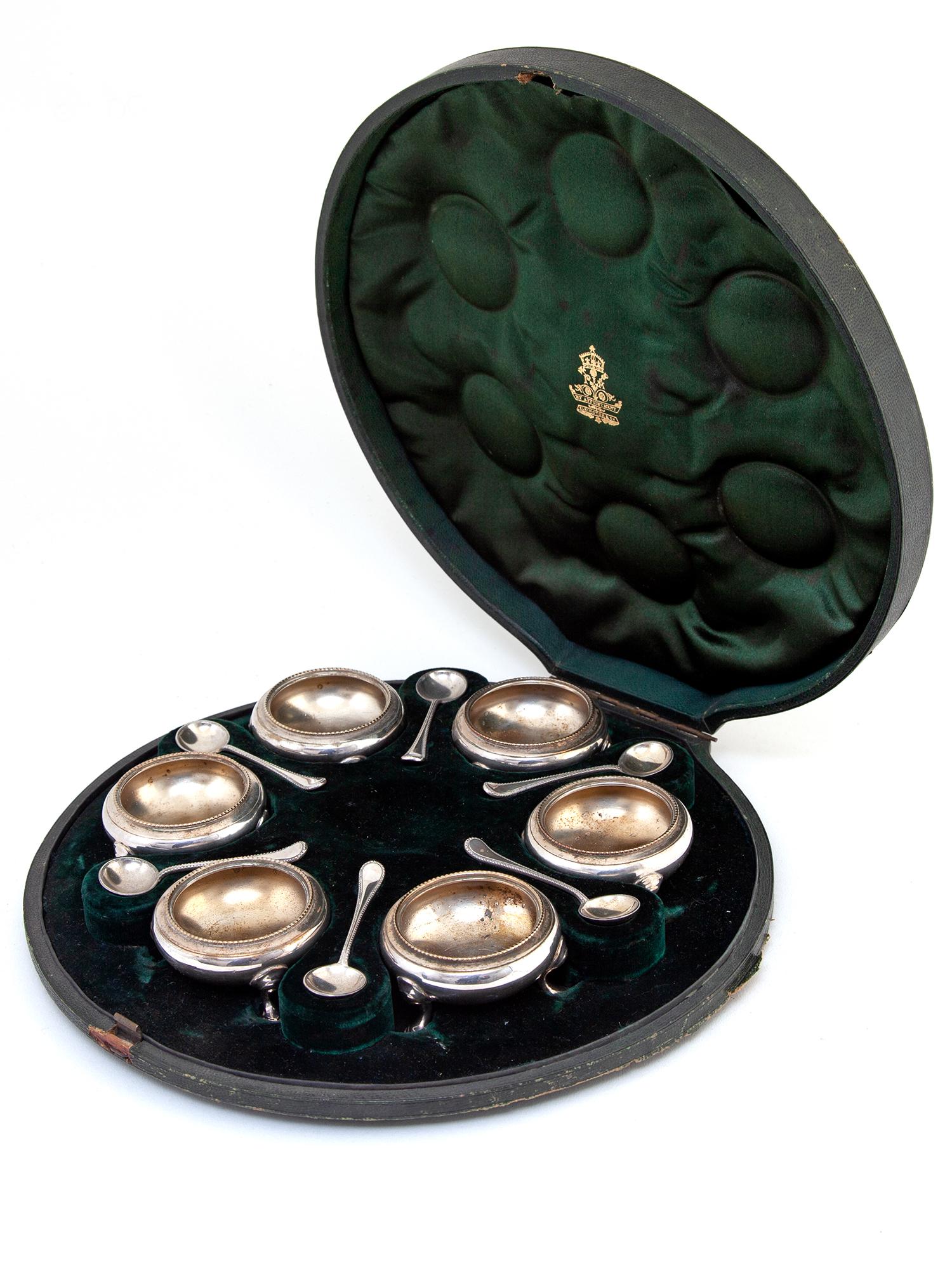 Antique Elkington & Co Boxed Set of Six Silver Plated Salts & Salt Spoons (1 of 6)