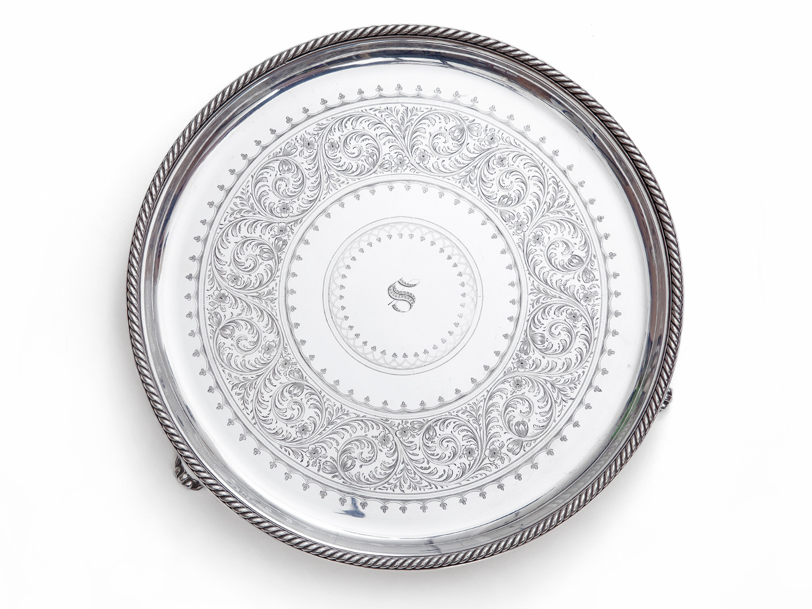 Antique Elkington & Co Silver Plate Salver with Applied Rope Border (1 of 1)