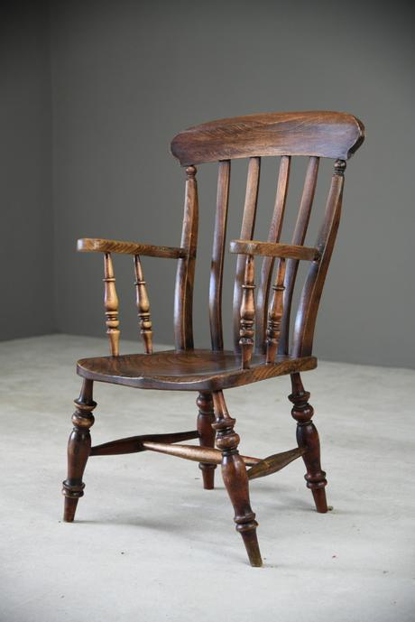 Antique Elm & Beech Lathe Back Kitchen Chair Armchair