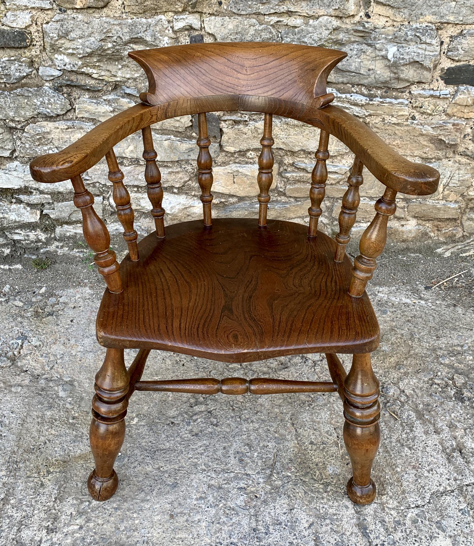 Antique Elm Captains Chair or Smokers Bow