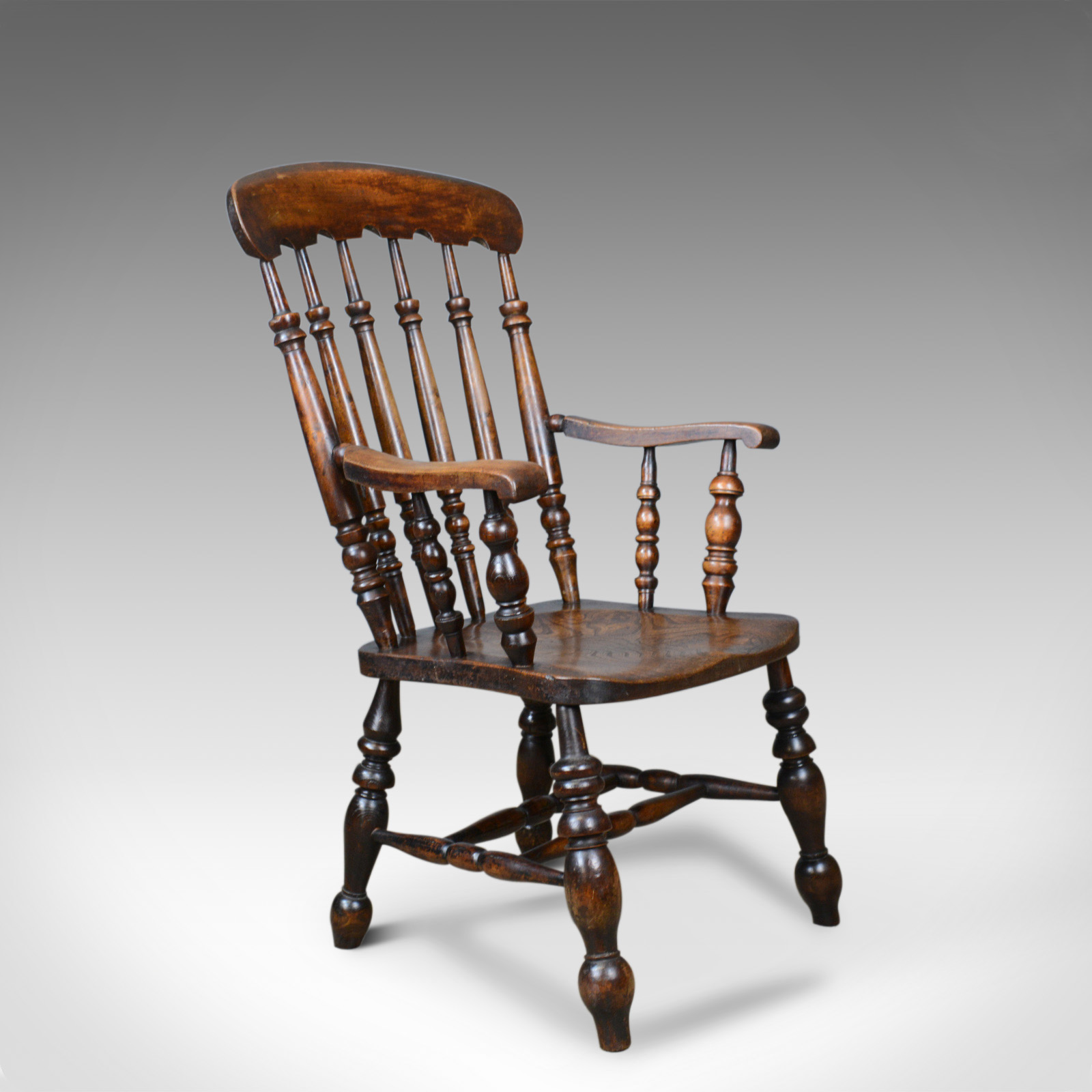 Antique Elm Elbow Chair, English, Victorian, Stick Back Windsor c.1880