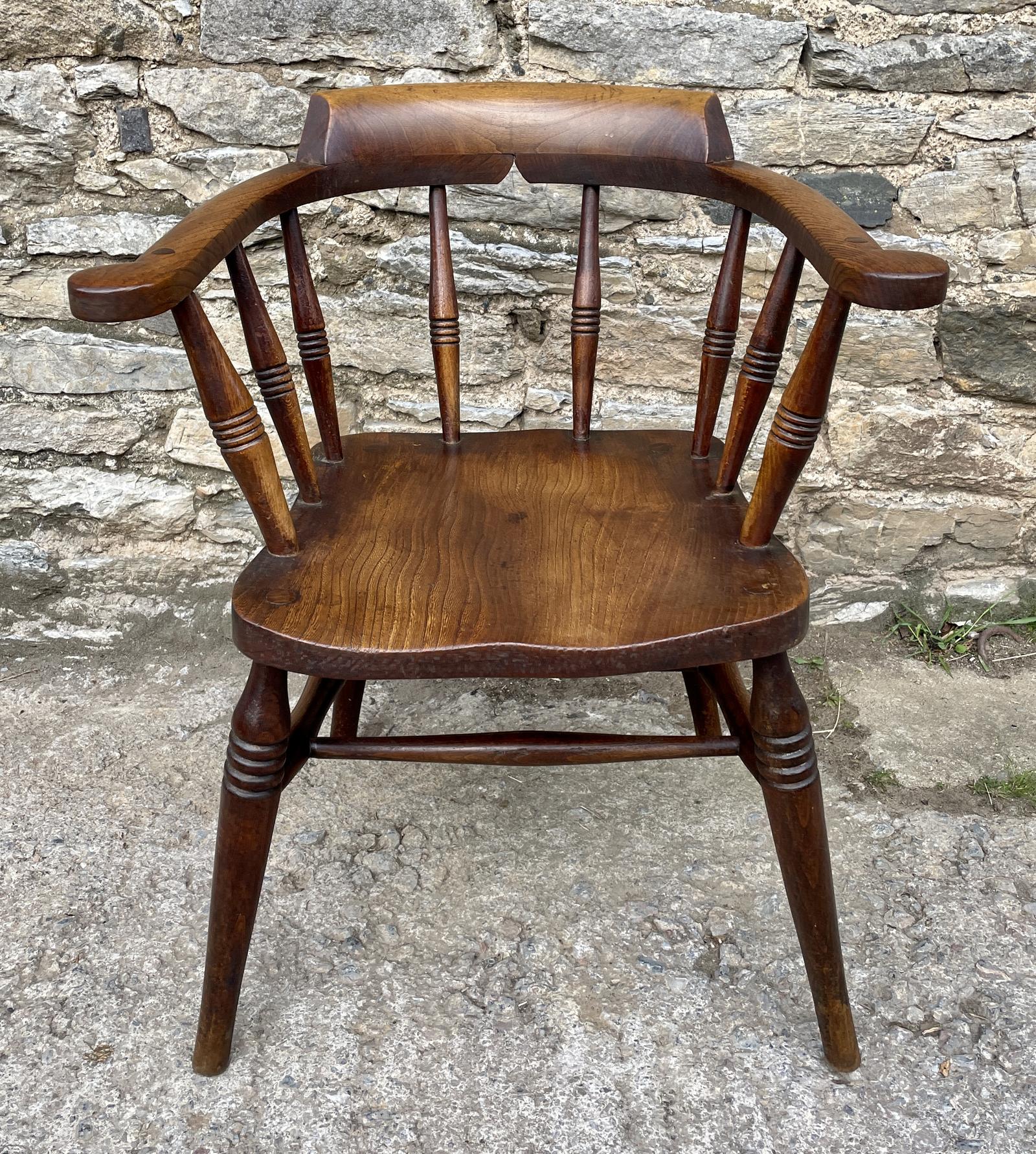 Antique Elm Seated Smoker’s Bow Armchair