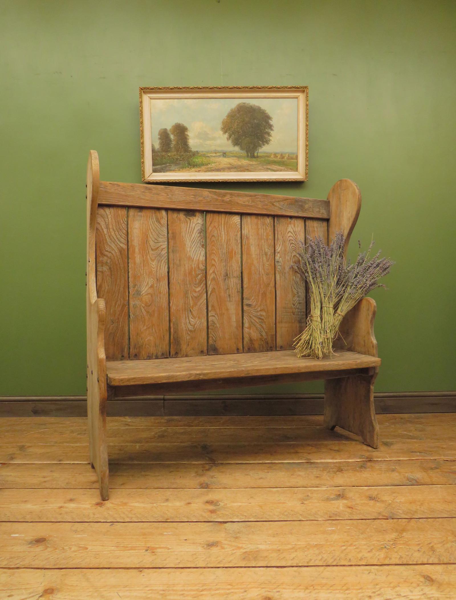 Antique Elm Tavern Bench Settle, Rustic Hall Seat