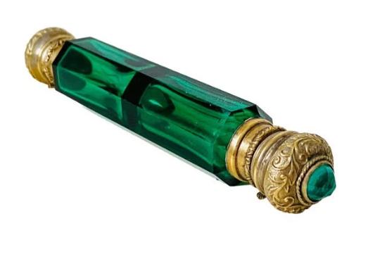 Antique Emerald Green Double Ended Perfume Scent Bottle with Jewelled Lids c.1880
