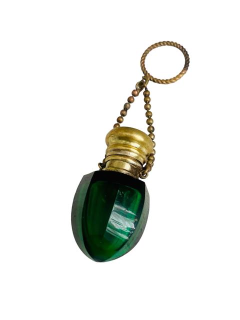 Antique Emerald Green Glass Acorn Form Chatelaine Perfume Scent Bottle Circa 1880
