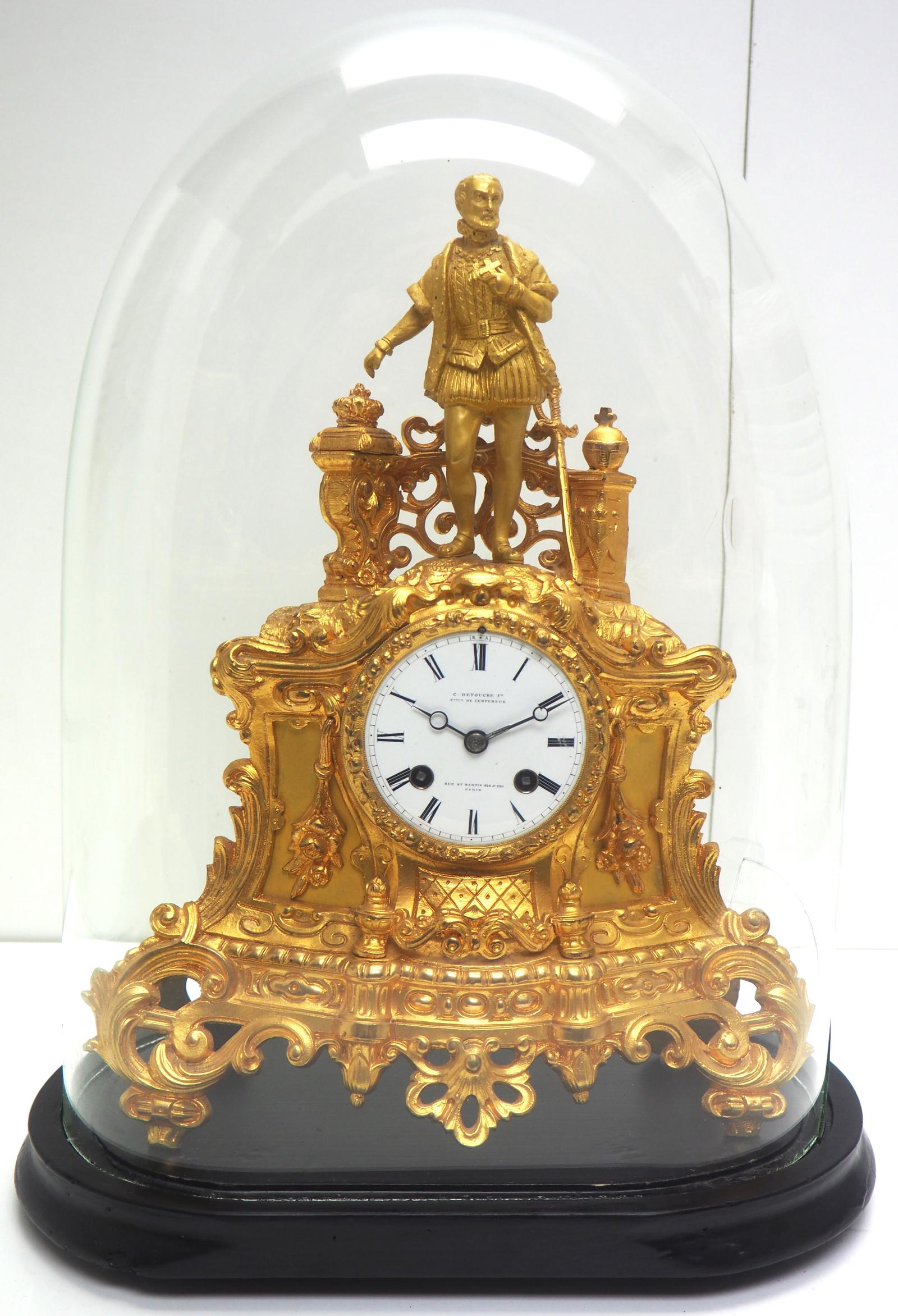 Antique Empire 8-day French Ormolu Mantle Clock – Figural Mantel Clock With Glass Dome