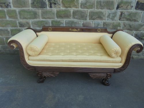 Antique Empire Period Mahogany Scroll Arm Sofa / Settee / Couch c.1810