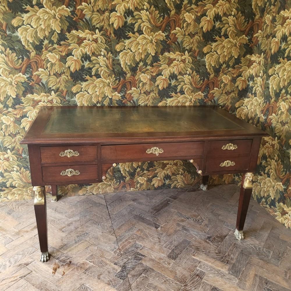 A fine quality Empire style mahogany freestanding desk, dating from around 1900, offered by Hutton-Clarke Antiques.