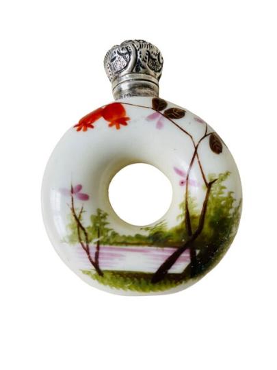 Antique Enamel & Gilt Porcelain Ring Shaped Perfume Scent Bottle Silver Lid Charles May 1889