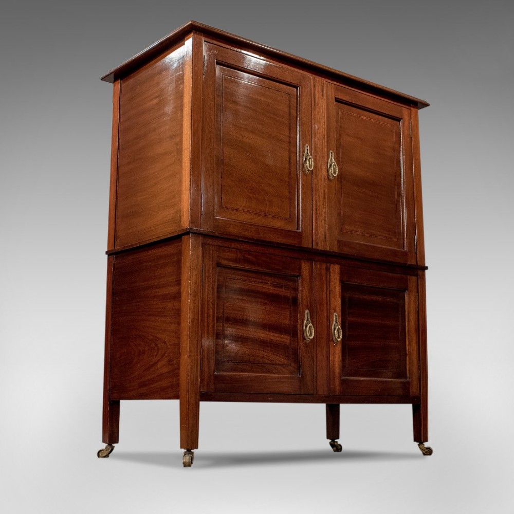 Antique English Edwardian Cabinet Storage Cupboard 3' Wide - in Mahogany c.1910 (1 of 1)