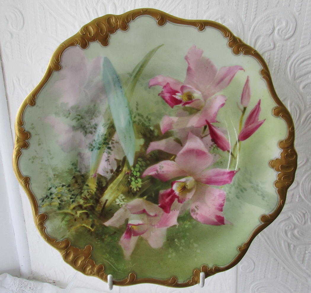 Antique English Edwardian Royal Doulton Porcelain Cabinet Plate ~ "Laelia Gouldiana Orchids" ~ David Dewsberry