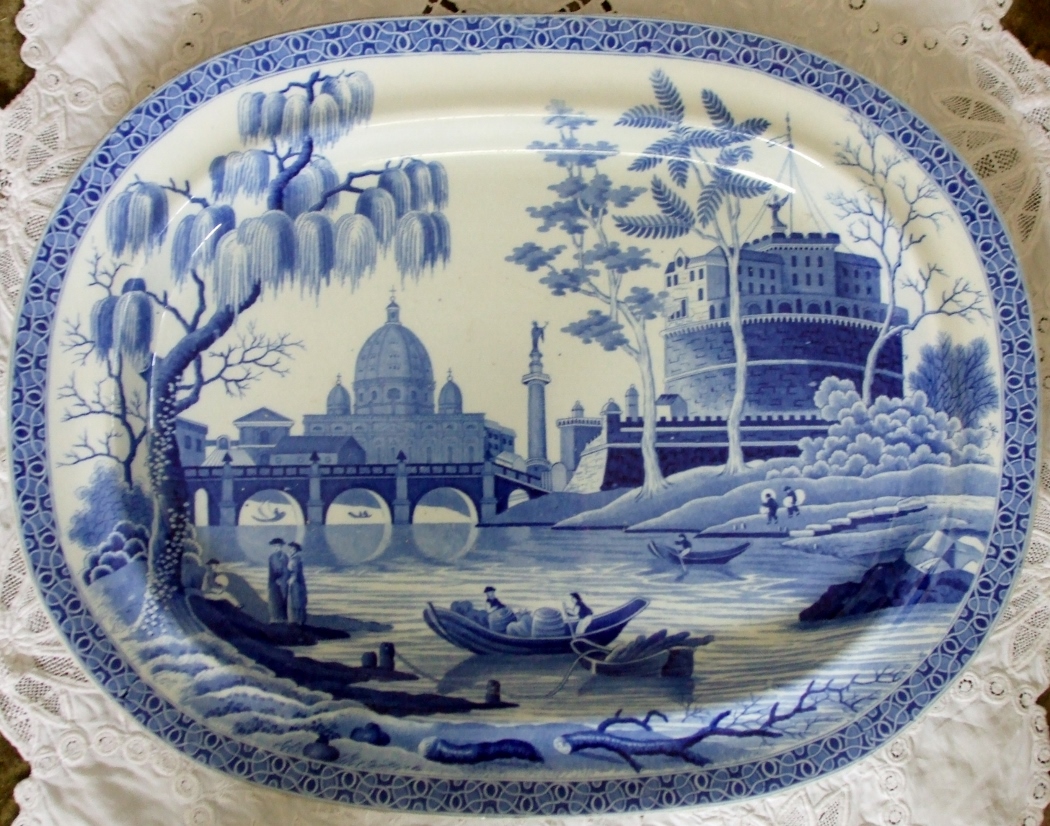 Antique English Georgian Blue and White Transfer Serving Dish / Platter ~ "Rome / Tiber" Pattern ~ Spode