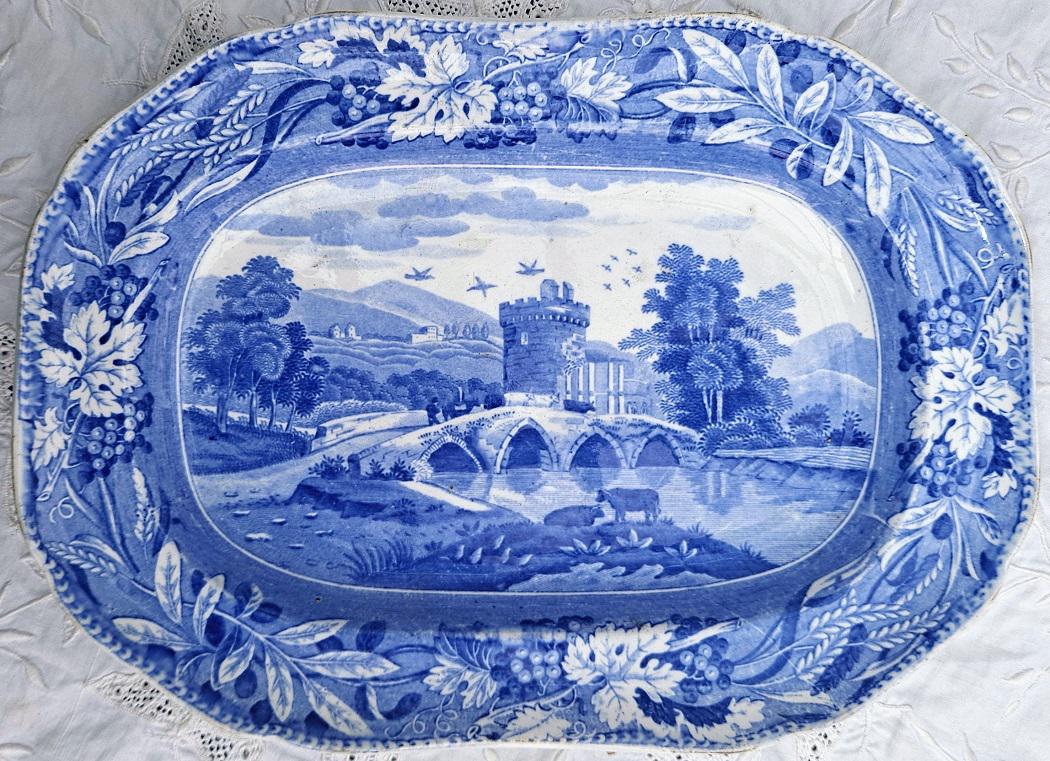 Antique English Georgian Blue & White Transfer "Bridge of Lucano" Pattern Pottery Dish ~ Spode
