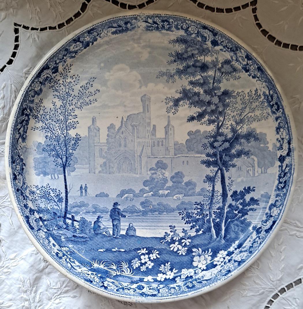 Antique English Georgian Blue & White Transfer "Kirkstall Abbey, Yorkshire" Tazza