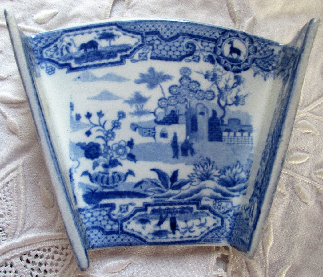 Antique English Georgian Blue & White Transfer Pottery Asparagus Server