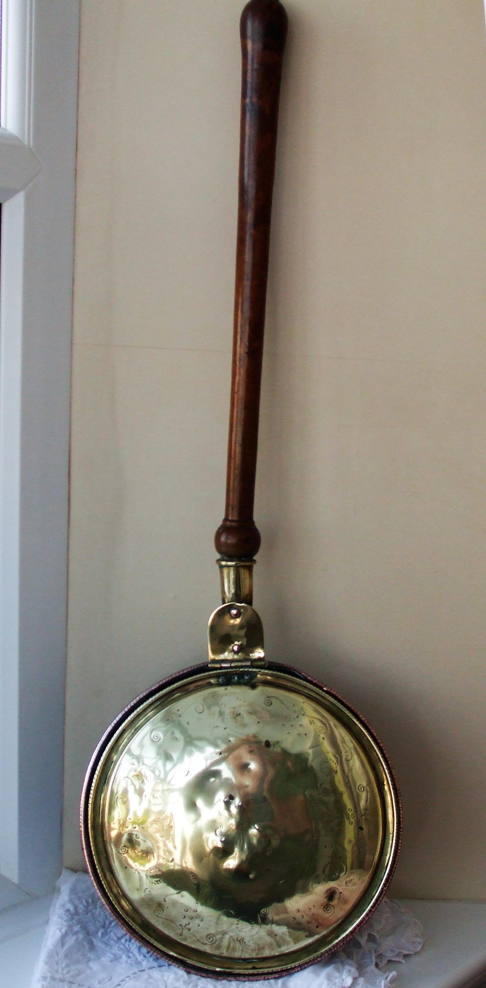 Antique English Georgian Brass & Copper Warming Pan