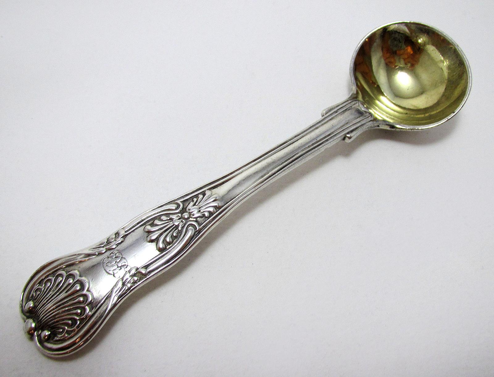 Antique English Georgian Solid Sterling Silver Salt/Mustard Pot Spoon, Rare King's Honeysuckle, 1823