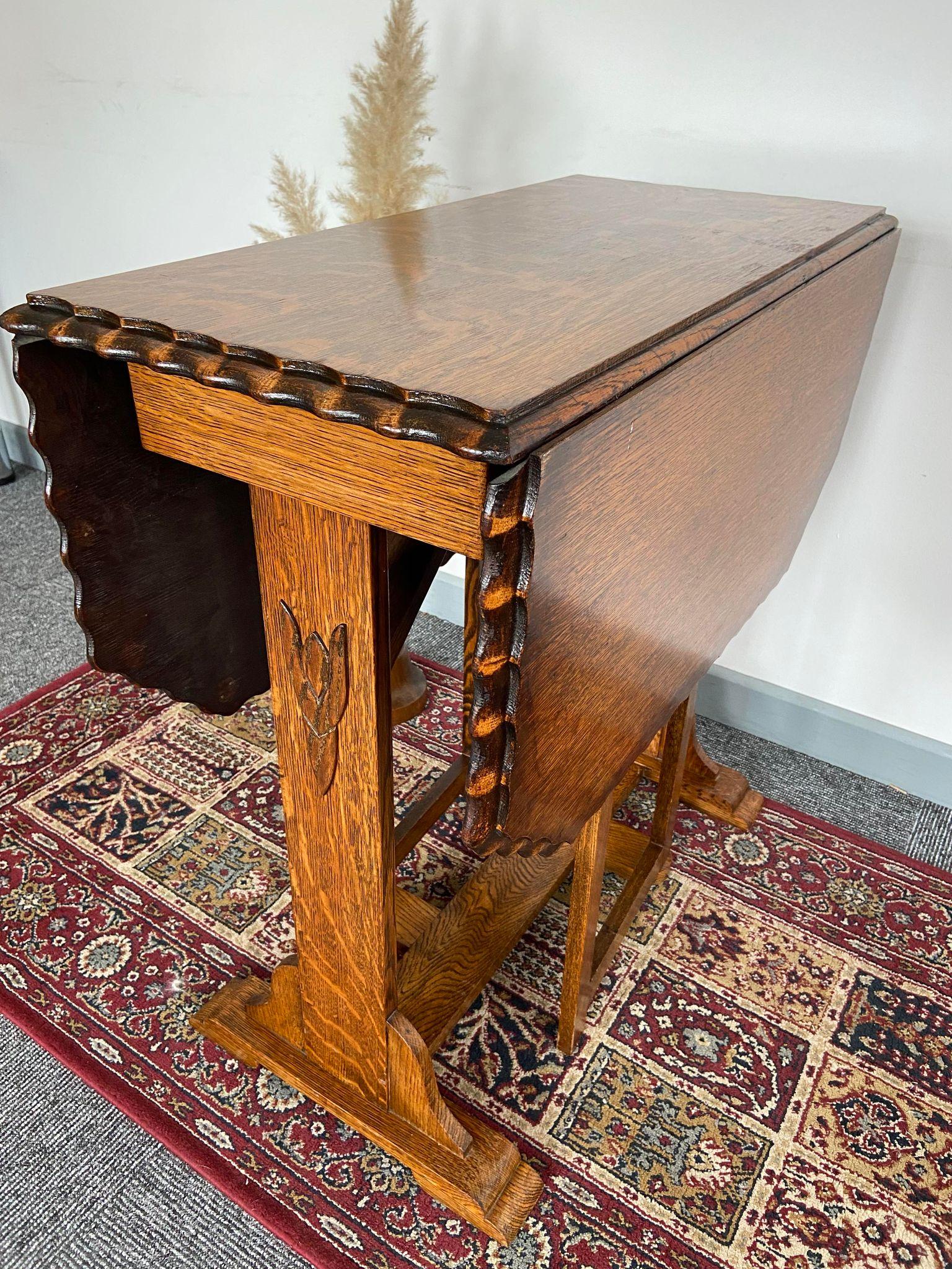 Antique English Honey Oak Table / Drop Leaf Gateleg / Oak Barley Twist Table / English c.1920