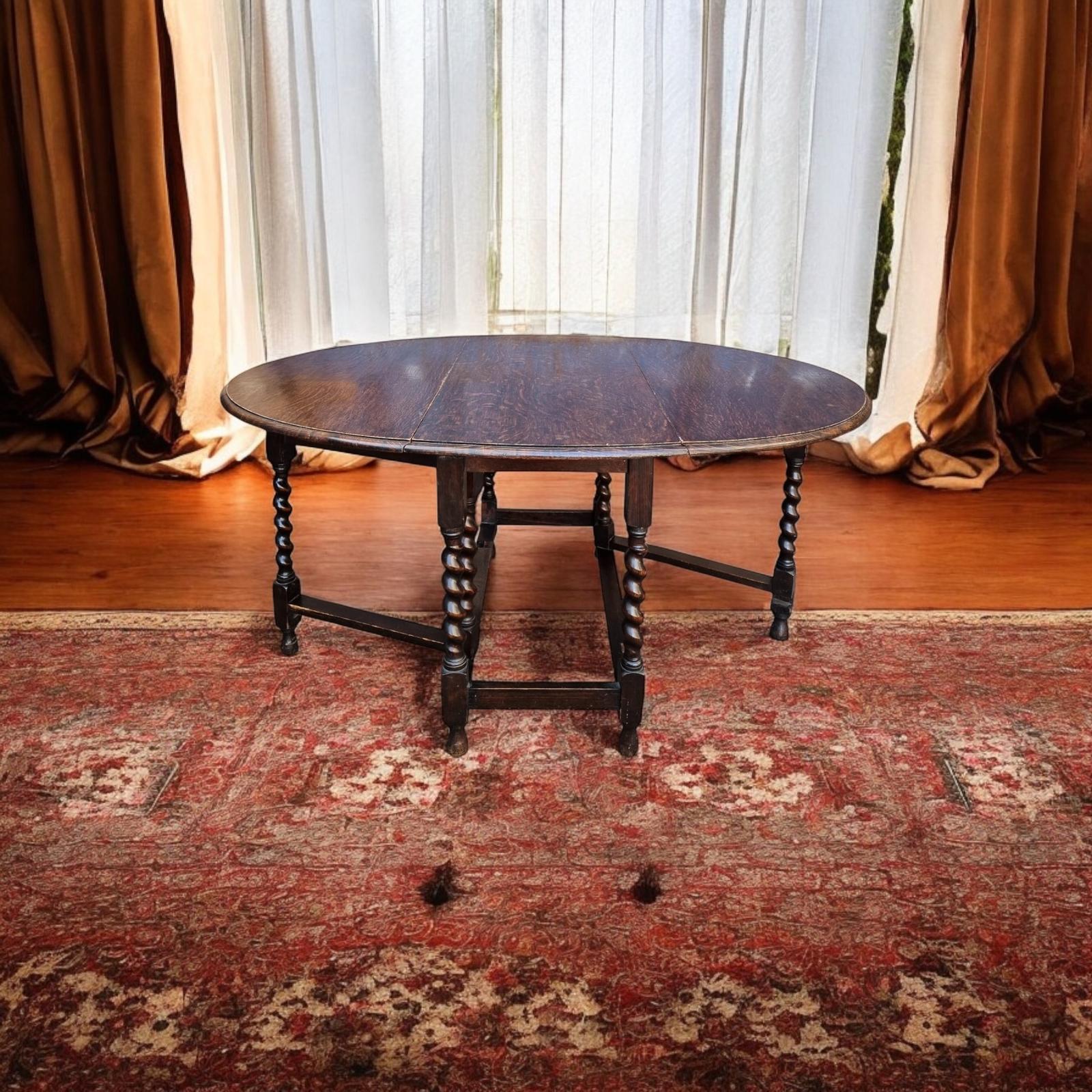 Antique English Large Drop Leaf Table / Solid Oak / Seats 4-8 1900-1920s