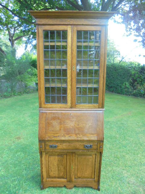 Antique English Light Oak Bureau Bookcase / Library Bookcase c.1900